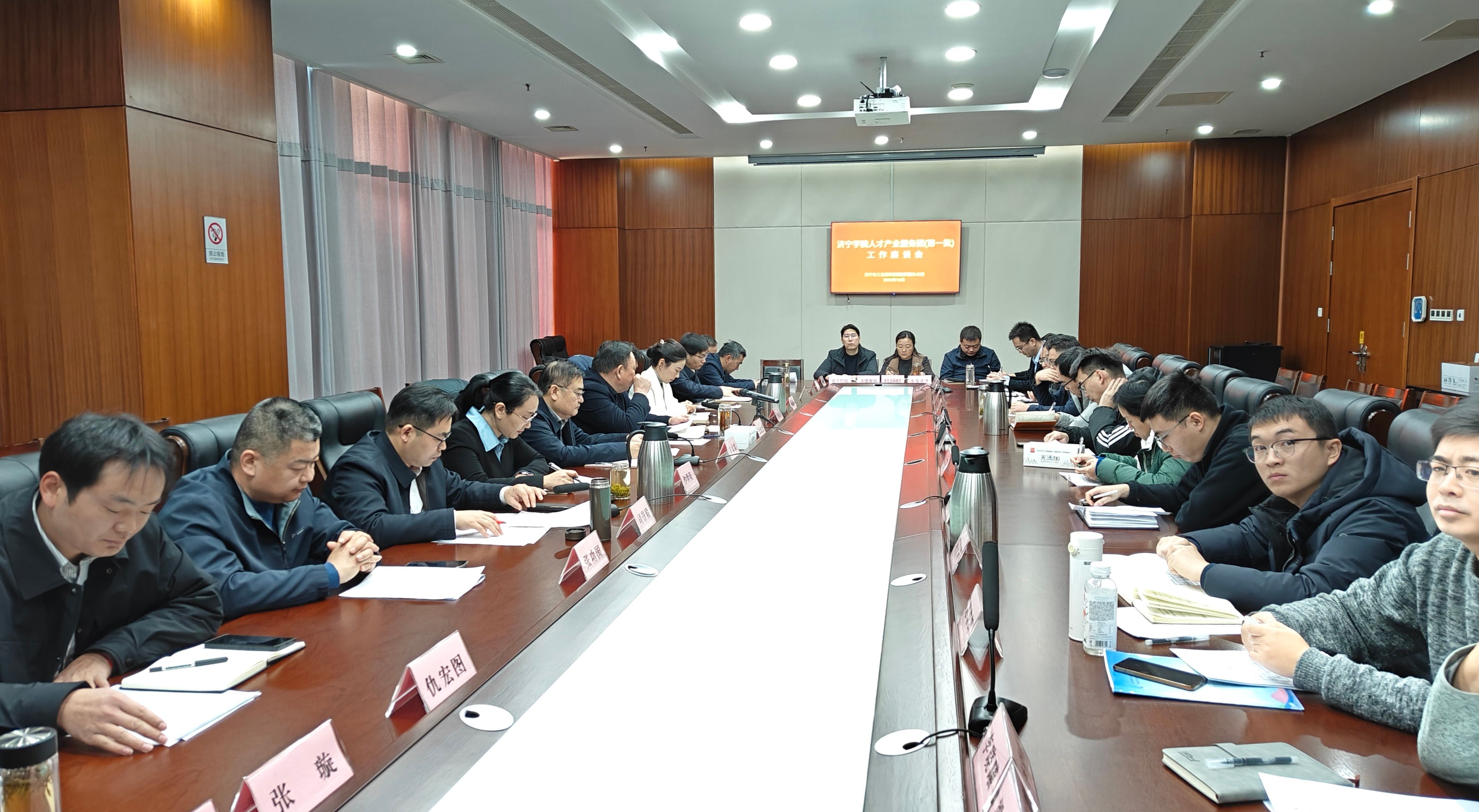 12月26日,济宁学院人才产业服务团(第一批)工作座谈会在省运会指挥中心A0105会议室成功举行。学校党委副书记丰家雷,济宁市工业经济倍增指挥部办公室副主任、市工业和信息化局局长屈耀武出席会议。会议由学校合作发展办公室副主任、人才产业服务团团长司崇殿主持。